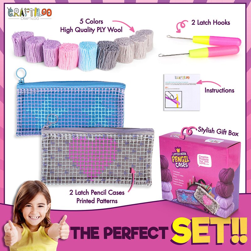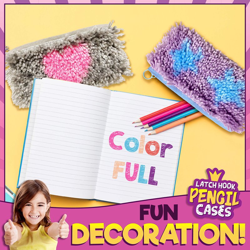 - 😍 USEFUL CRAFT THAT KIDS WILL BE HAPPY TO DO: With this starter Hook rug kits for kids your kid will actually be excited to create the beautiful latchkit pencil cases. It comes with beautiful patterns that kids love and the finished hooked pencil case that can be used for school or as a hand made gift.