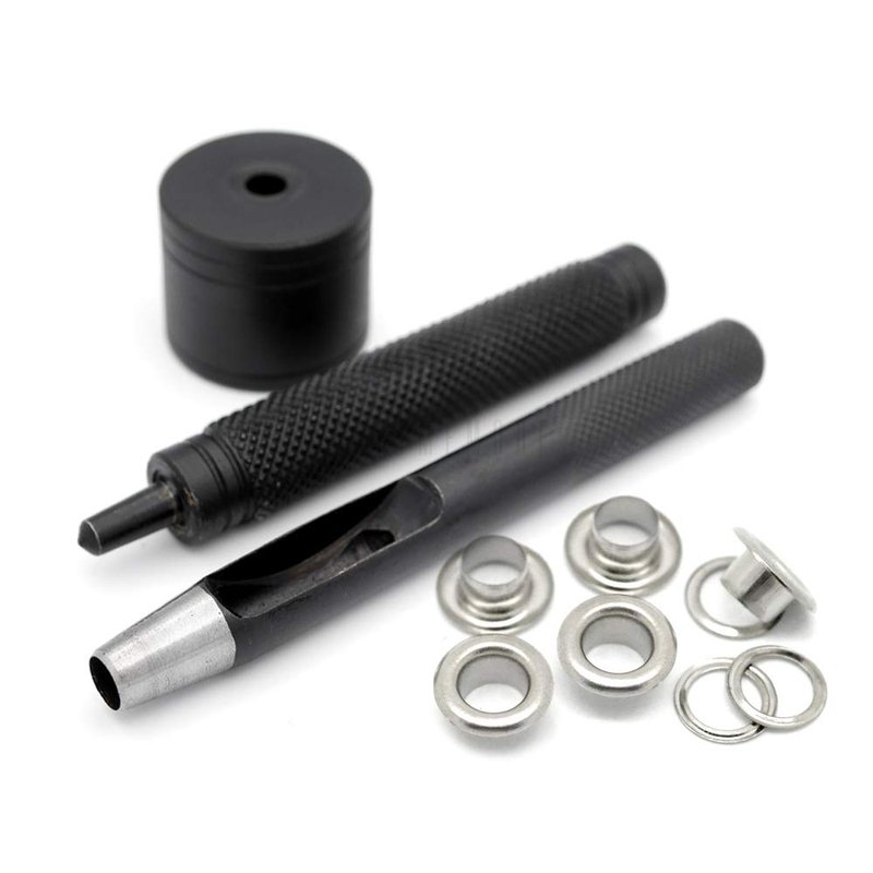 CRAFTMEMORE 3/16" Grommet Tool Kit Eyelet Setting Tool Grommet Setter Hole Punch Cutter & Pack of 100 Grommets (3/16" (5mm) Inside Diameter)