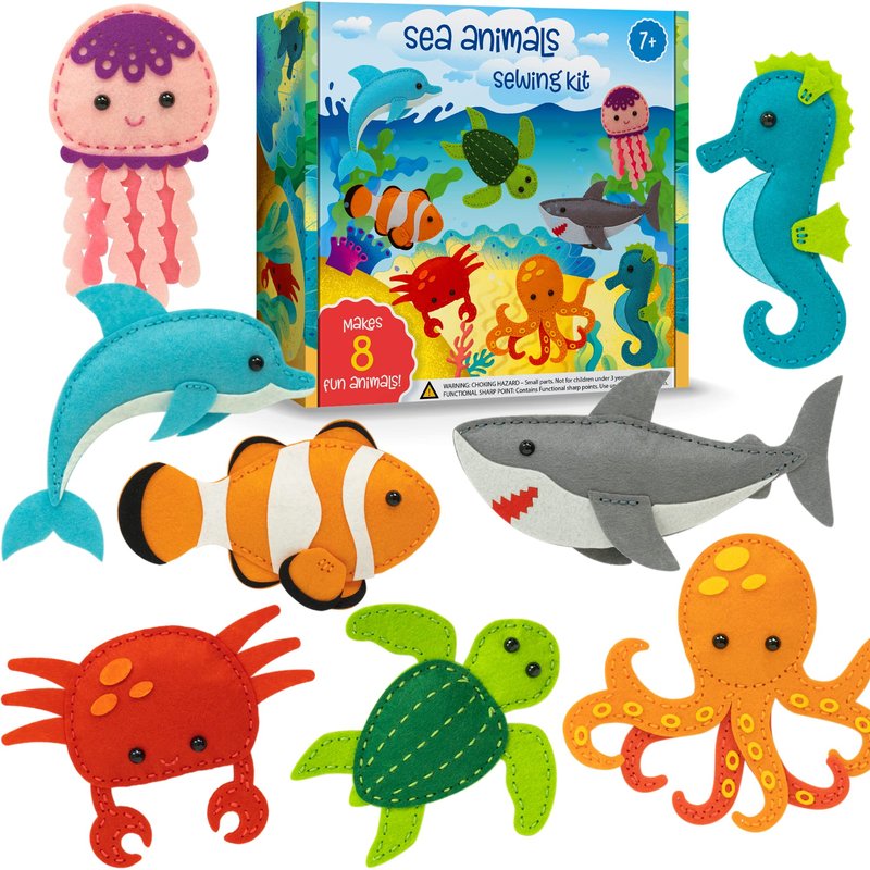 Craftorama Sewing Kit for Kids, Fun and Educational Sea Animal Craft Set for Boys and Girls Age 7-12, Sew Your Own Felt Animals Craft Kit for Beginners, 165 Piece Set