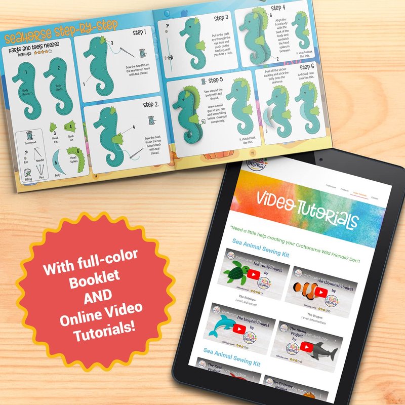Unlike other sewing kits for kids that only include some basic instructions, we have included a full-color booklet with step-by-step instructions for each animal, as well as online video tutorials, guiding you every step along the way.
