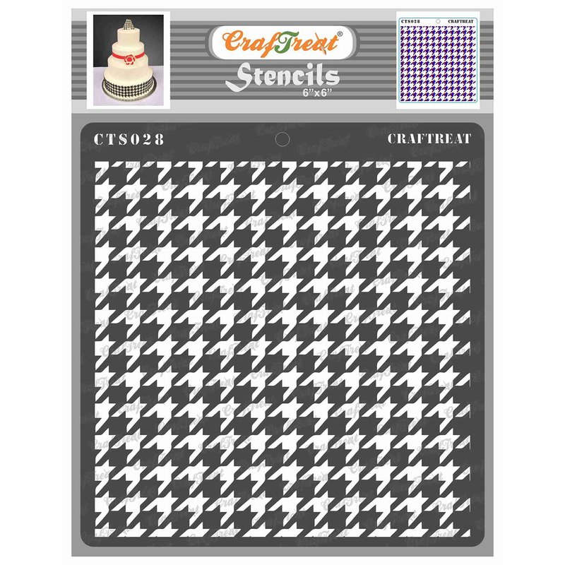 CrafTreat Geometric Stencils for Painting on Wood, Wall, Tile, Canvas, Paper, Fabric and Floor - Houndstooth Stencil - 6x6 Inches - Reusable DIY Art and Craft Stencils - Houndstooth Stencils
