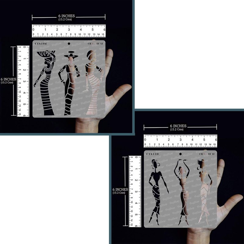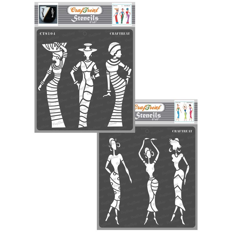 CrafTreat Tribal Stencils for Painting on Wood, Wall, Tile, Canvas, Paper, Fabric and Floor - African Models 1 and African Models 2-2 Pcs - 6x6 Inches Each - Reusable DIY Art and Craft Stencils