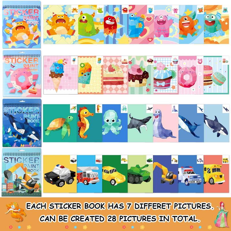 Crafts for Kids Ages 4-8 Sticker Paint Numbers Books for Kids Boys Girls Ocean Vehicles Desserts Monster Stickers Party Favors Road Plane Travel Toy Activity Book Relaxation Christmas Gifts