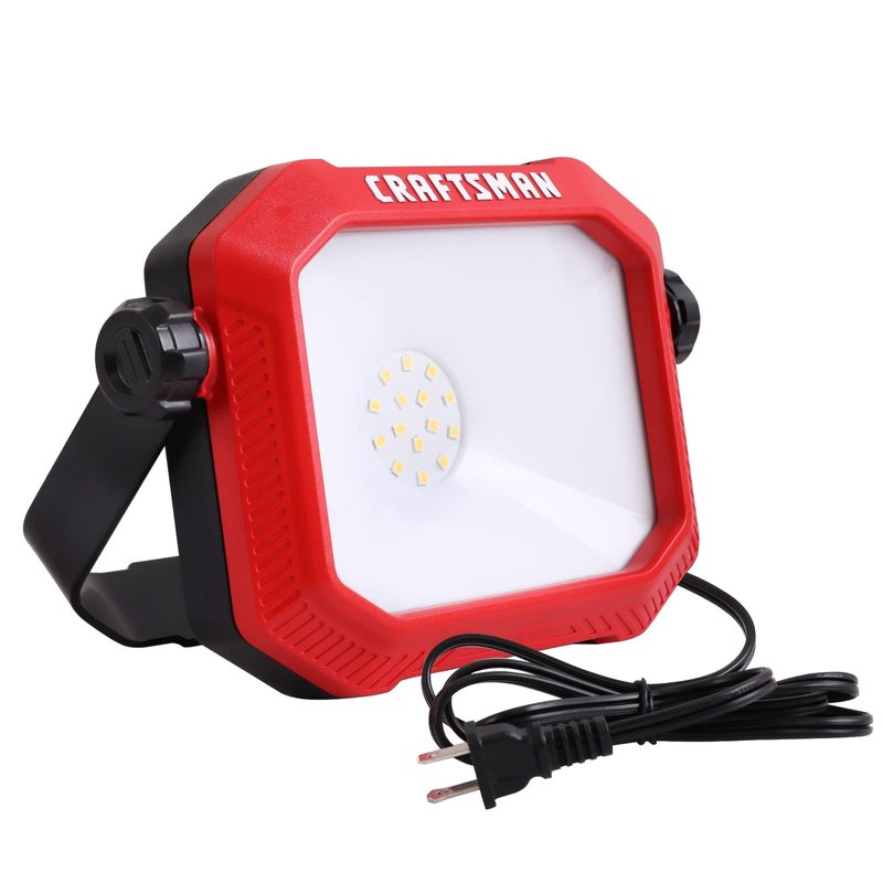 CRAFTSMAN 1100 Lumens 4000K LED Tiltable Portable Work Light in Red with 2-in-1 Adjustable Metal Rotating Stand and Handle, Impact-Resistant Glass Lens, 5FT Power Cord, ETL, Perfect for Job Site