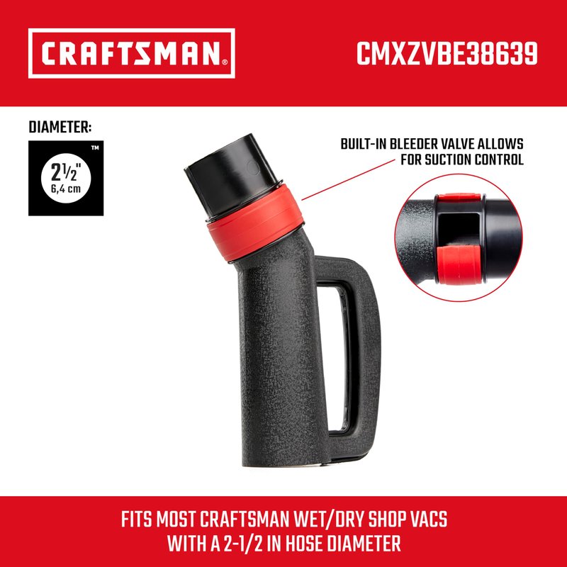 - FITS: CRAFTSMAN and most other shop vacuums with a 2-1/2 in. diameter hose