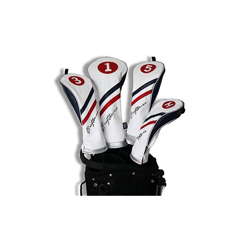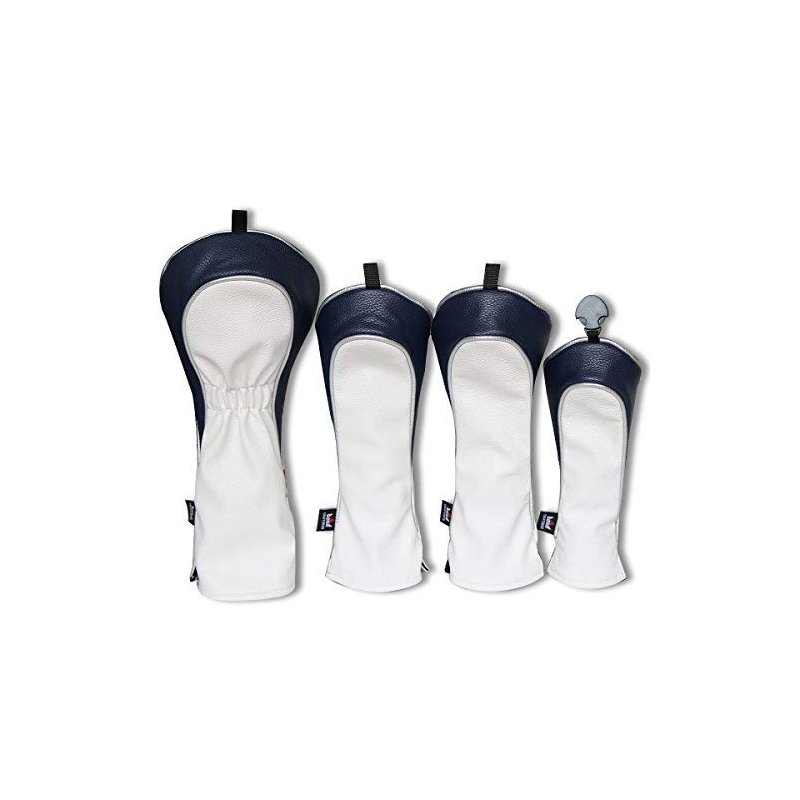 Craftsman Golf White Blue Red Pu Leather Diagonal Stripes Driver/Fairway Wood/Hybrid Headcover #1#3#5 H for All Brands Callaway Big Bertha Cobra Taylormade Ping Mizuno Etc.(4pcs (1,3,5,H))