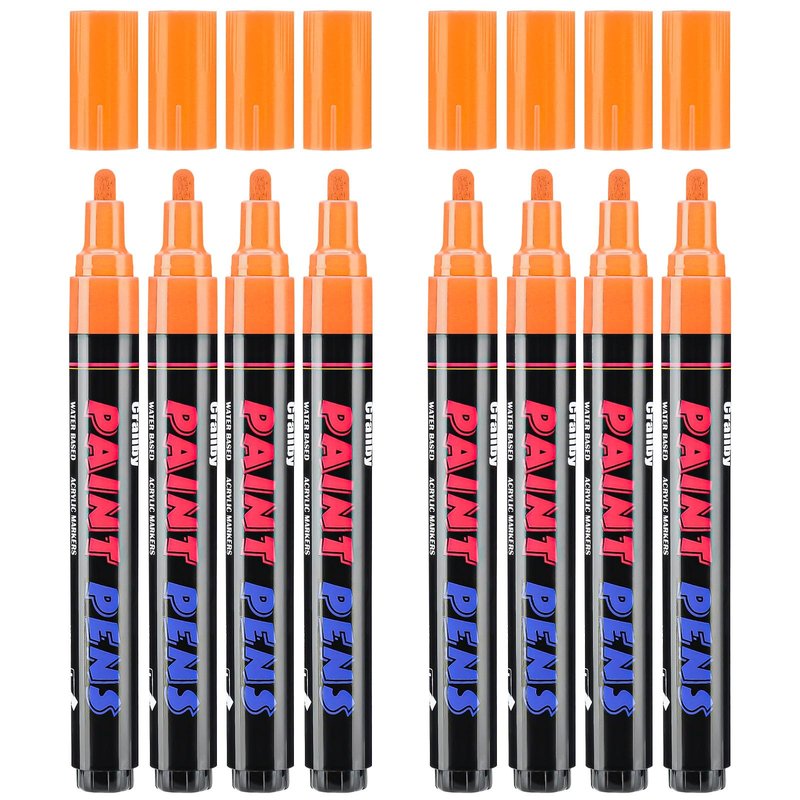 Craiiby Orange Paint Pens Paint Markers - 8 Pack Permanent Acrylic Quick Dry Waterproof Marker Pens for Rocks Wood Fabric Plastic Canvas Glass Mugs Metal Tire Stone