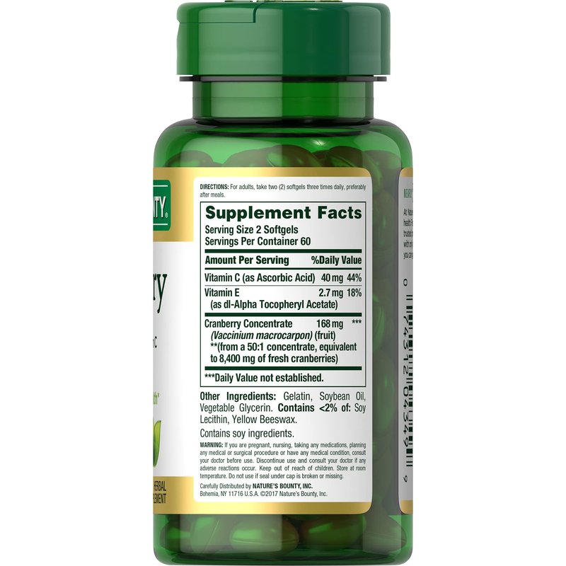 - FROM THE TRUSTED WELLNESS EXPERTS: Nature’s Bounty Cranberry with Vitamin C Softgels bring together science, nature and a 50 year dedication to quality, consistency and scientific research for vitamins and nutritional supplements of unrivaled excellence