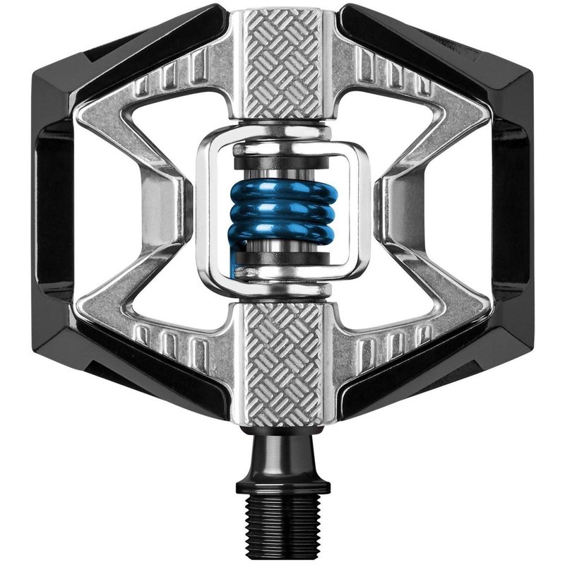50-4467 / Crankbrothers Doubleshot Platform Pedals The Doubleshot platform pedal is an all-new hybrid platform pedal that truly gives you the best of both worlds and lets you ride either flat or clipped in without sacrificing comfort or stability. The new design eliminates the 4-way engagement cage that Crankbrothers is known for, instead substitutes a double-sided engagement that enables you to ride either clipped in with cycling shoes, or utilize the platform pedal with normal street shoes without having the pedal cage pushing into the bottom of your foot. Diamond plate pads and molded pins provide excellent traction on the platform, while the double-sided entry cleat provides customizable float and easy entry. Hybrid pedal half flat / half clip-in Moulded pins and ribs for grip Diamond plate pads for traction 2-sided entry / superior mud shedding Premium bearings & double seal system Includes cleats and hardware