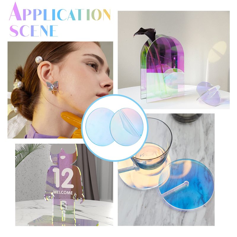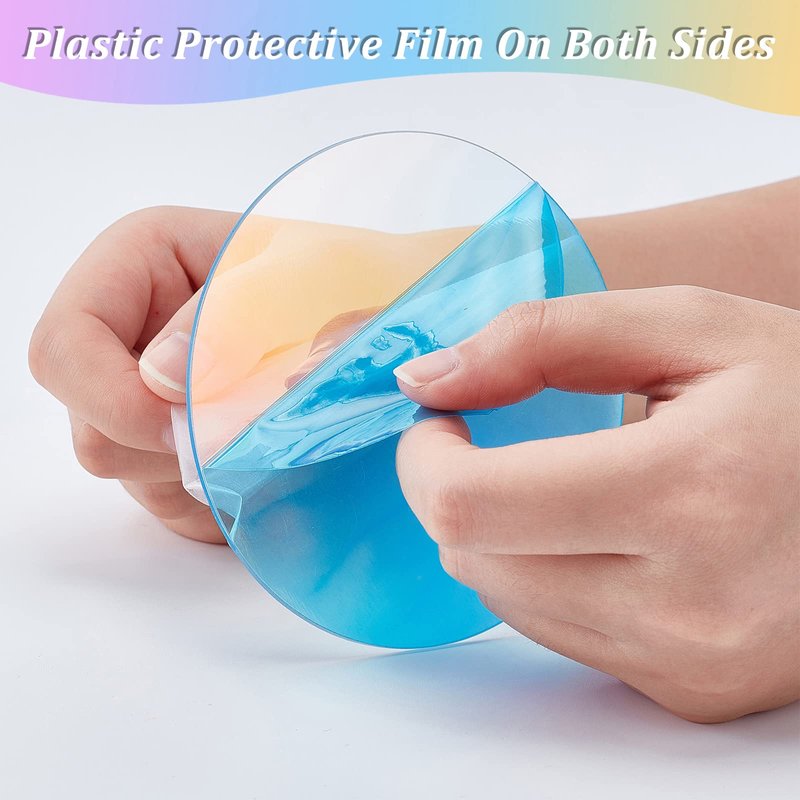 - Tip: Before use, please peel off the surface protective films on both sides to get a clean Iridescent round acrylic sheet, which is convenient for your use.