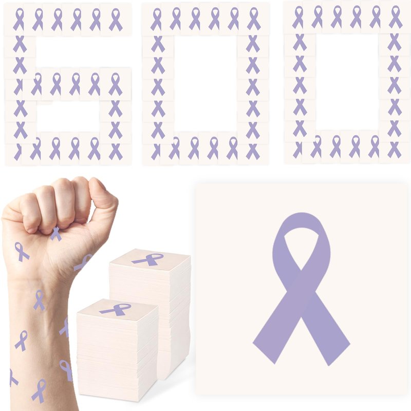 CrateGurus Co. 600 Pcs Lavender Awareness Ribbon Tattoo Stickers Bulk World Cancer Day Gifts Foster Care Caregiver Vulvar Cancer Awareness Products Infantile Spasms Purple All Cancer Awareness Items