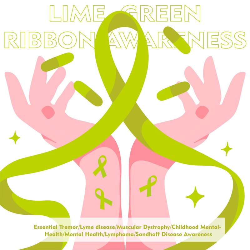 - Inspire Hope & Faith: Lime green awareness ribbon are more than just a decoration, they're a symbol of hope, faith, and awareness which could transmitted love to the world.Wheather essential tremor awareness,lyme disease awareness, chilldhood mental health awareness, muscular dystrophy awareness, depression awareness, lymphoma awareness, alopecia areata awareness, trichotillomania awareness, pans/pandas awareness. Lime green cancer ribbon tattoos will spread a message of positivity.