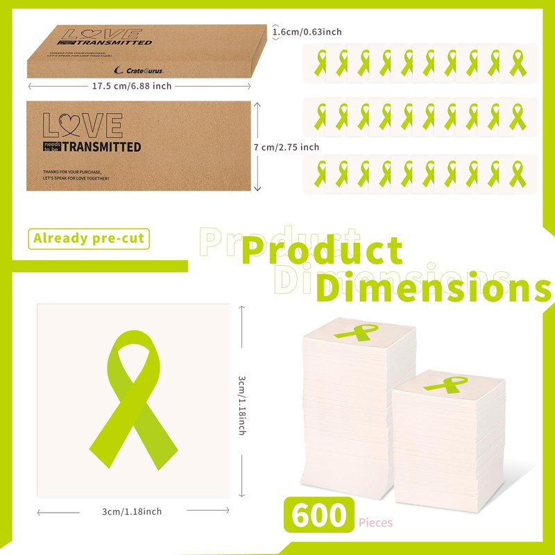 CrateGurus Co. 600 Pcs Lime Green Ribbon Awareness Temporary Tattoos Bulk Essential Tremor Childhood Mental Health Lyme Disease Depression Hodgkins Lymphoma Awareness Products Muscular Dystrophy Items