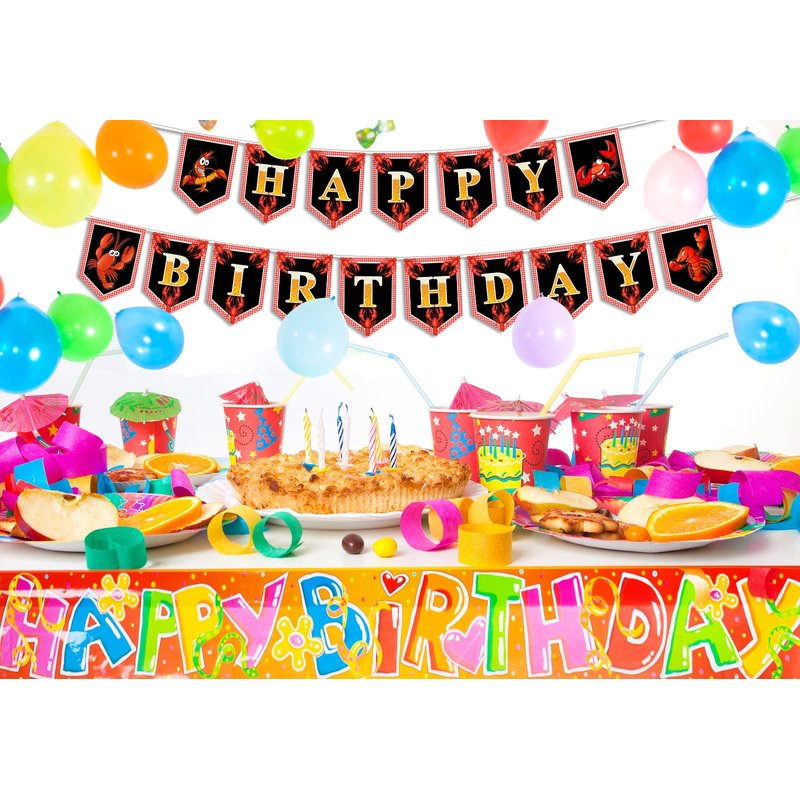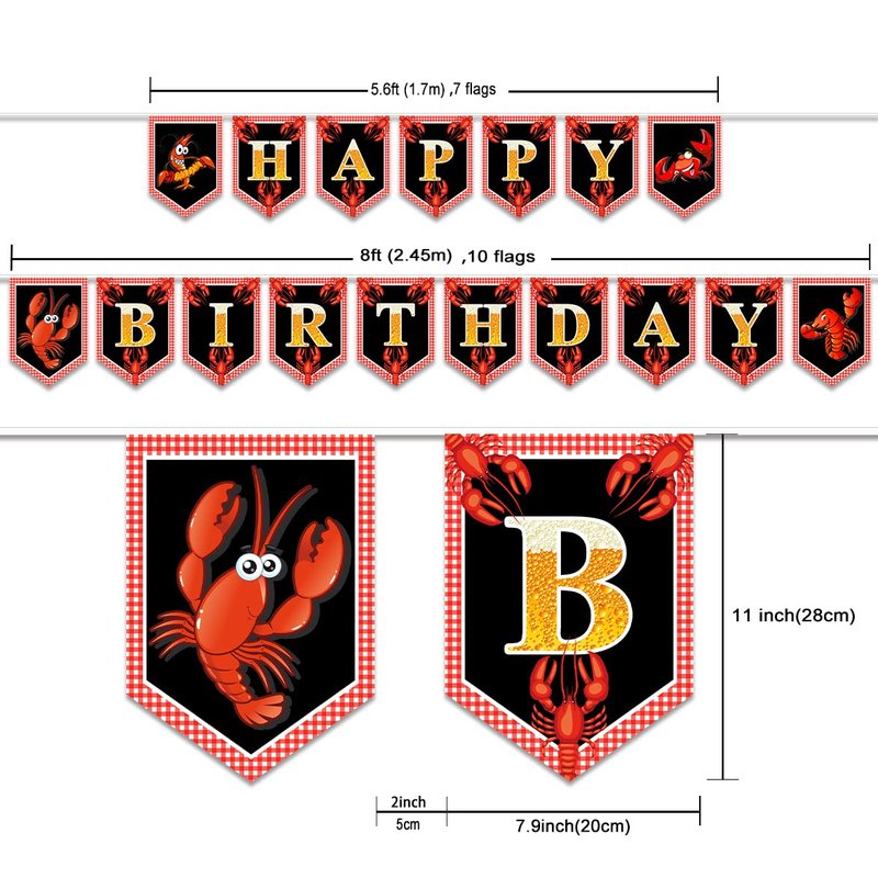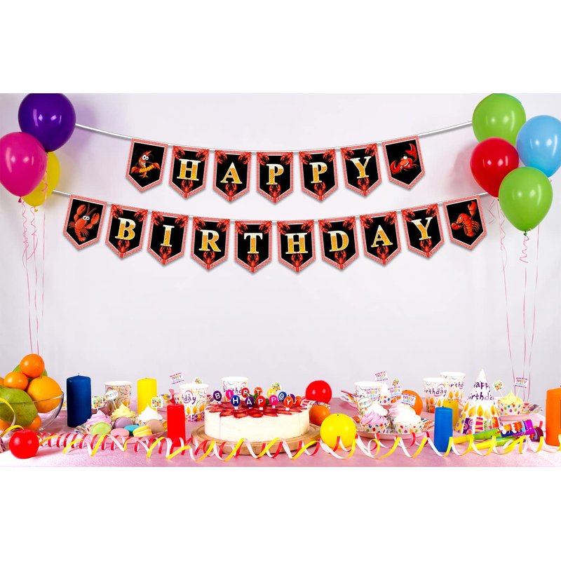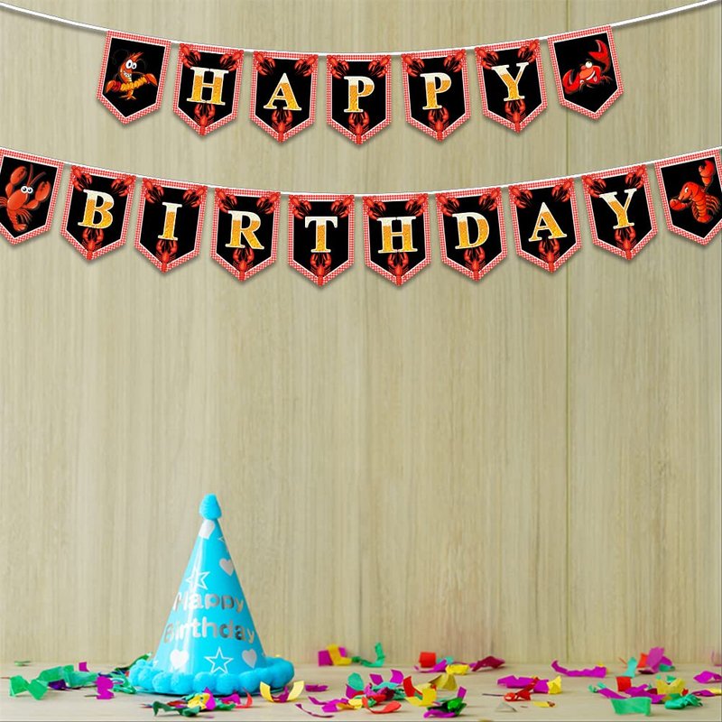 - Easy to Use: The crawfish theme happy birthday bunting banner is pre-assembled, No DIY Required, the rope is pre-connected with the banner, you just hang them to the perfect place where you like, also folds easily for storage.