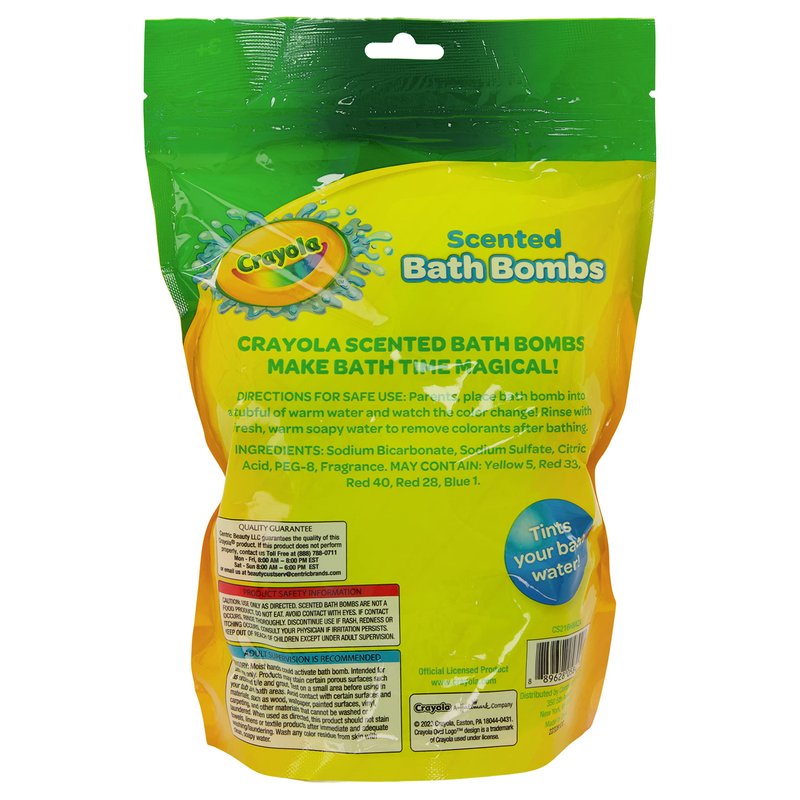 Create your own spa day at home! These Crayola bath bombs add a blast of color to your normal, every day bath. Vibrant colors are what Crayola is known for and these bath fizzers certainly deliver. Place a bath bomb into a tubful of warm water and watch the color change! This colorful set of scented bath bombs adds fun to bath time. Each tints your bath water with color and soothing bubbles. Recommended for ages 3 years and up.