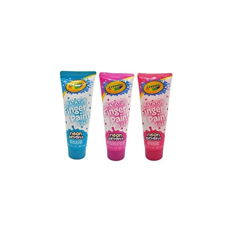 - Includes (3) Crayola Neon Bright Bathtub Finger Paint Soap, 3.0fl oz One of each shown in picture
