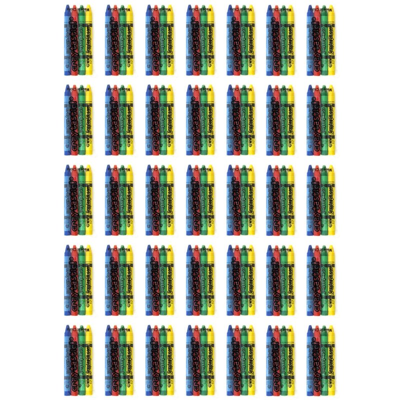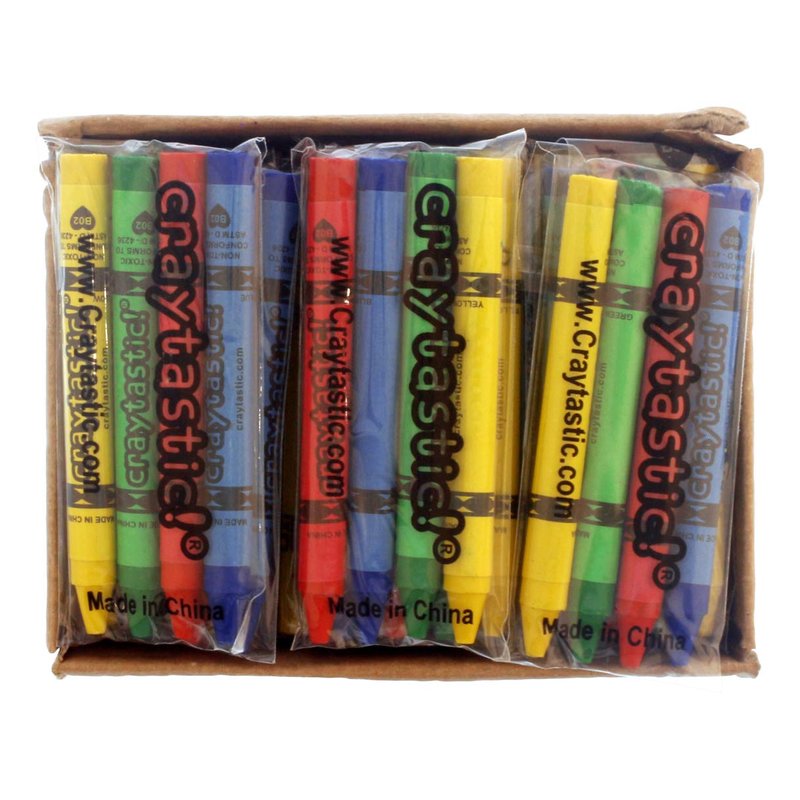 You will receive (1) case of Craytastic! Bulk Crayons which contains 36 packs in cello (cellophane) wrappers, each pack containing (4) crayons. Each pack contains an assortment of four different colors (Red, Yellow, Green, Blue). These are perfect for all kinds of activities including colouring, birthday parties, party favors, restaurants, stores, hair salons, schools, camps, or anywhere you may need to keep kids busy! Craytastic! Crayons measure 3.125 inches in size, are non-toxic, premium quality and fully safety tested for kids 5 & up! Our crayons conform to Safety Standard ASTM D-4236 and our tested to meet LHAMA (Labeling of Hazardous Art Materials Act) compliance and are free from Lead, Phthalates and Asbestos.
