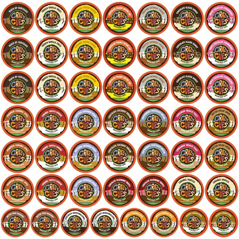 Crazy Cups Flavored Decaf Coffee Pods, Decaf Variety Pack, Assorted Decaffeinated Coffee for Keurig Machines, for Hot or Iced Coffee, Single Serve Coffee in Recyclable Pods, 50 Count