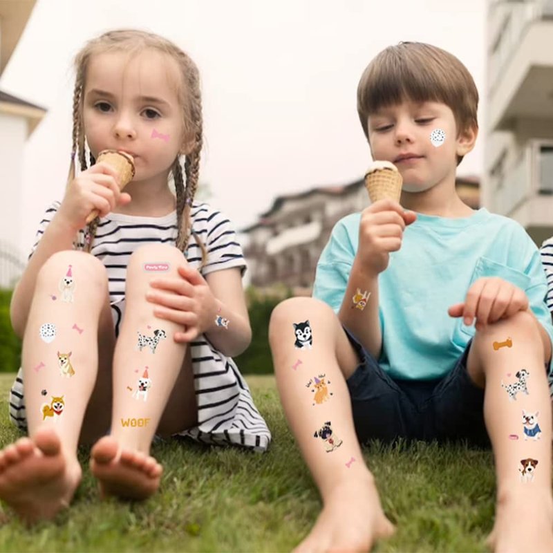 - 【Unique Design】these safe puppy dog tattoos for dog lovers will have them beaming. Every set comes with an assortment of 22 designs that include everything from dogs ,paws,balloons,woof ,bone