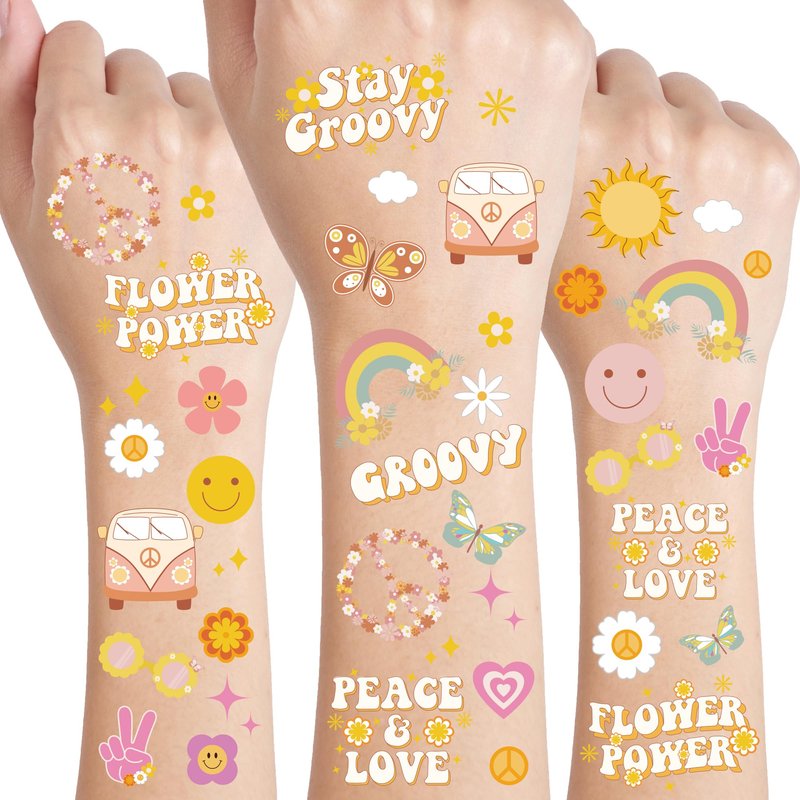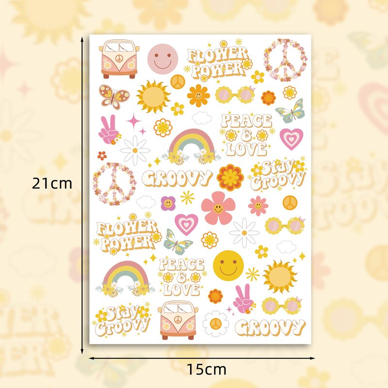 - 【Perfect Party Accessory】a fun addition to any groovy party, birthday, or baby shower decoration! Each sheet measures 8.25 " x 6 " creating the perfect size tattoos!