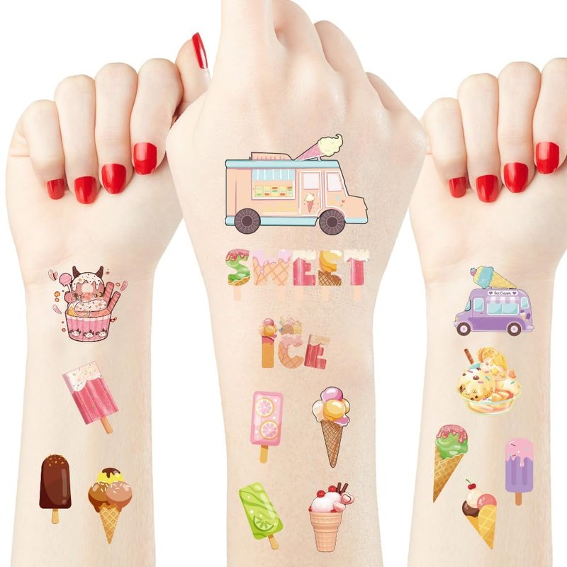 - 【Package Include】You will receive 3 sheets temporary tattoos-90 Styles,enough for sharing with your friends or family.These ice cream party temporary tattoos will add more fun to your ice cream party, making your party more attractive and leaving a deep impression on your guests.