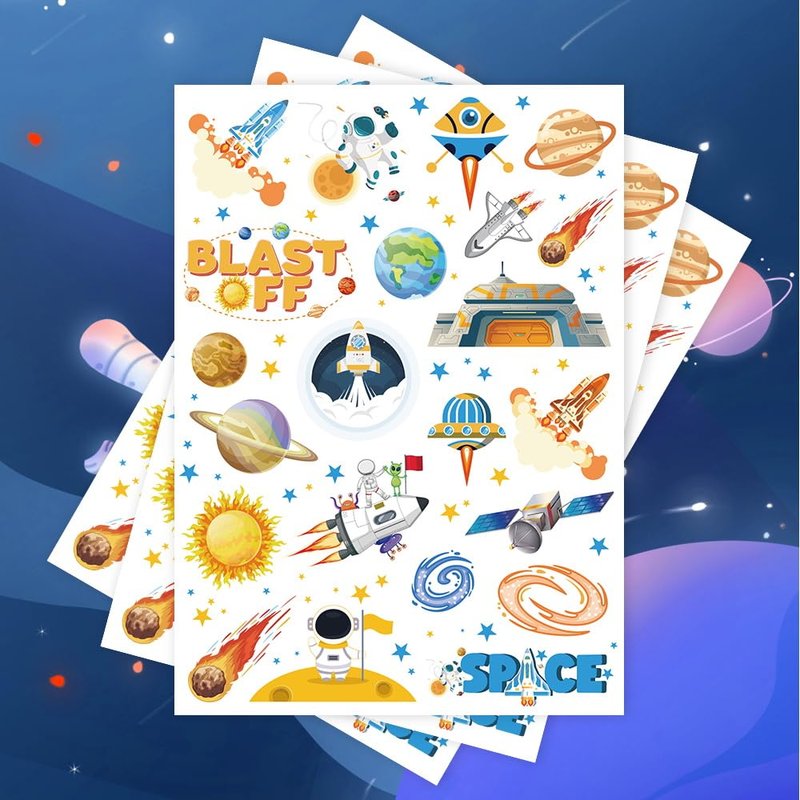 - 【Perfect Party Accessory】a fun addition to space party theme party decoration! Each sheet measures 8.25 " x 6 " creating the perfect size tattoos!