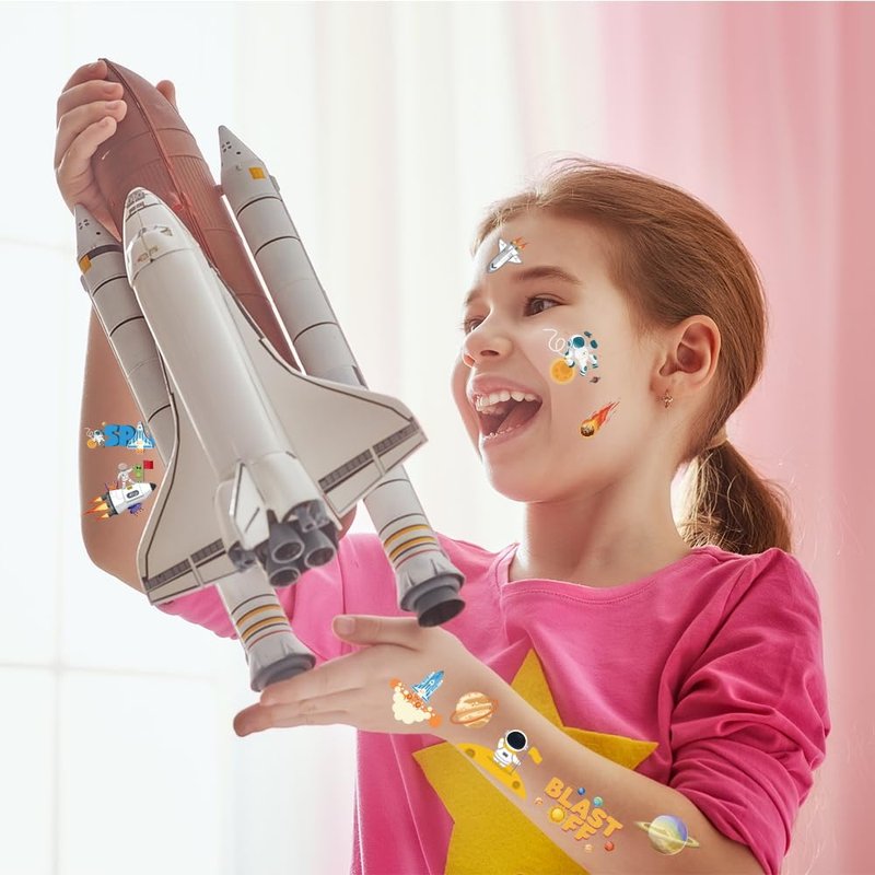 - 【Unique Design】These space party temporary tattoos are designed with funny elements, such as planet,rocket ship,astronaut,You can apply these fake tattoos on your face, arms, neck, back and other body parts.