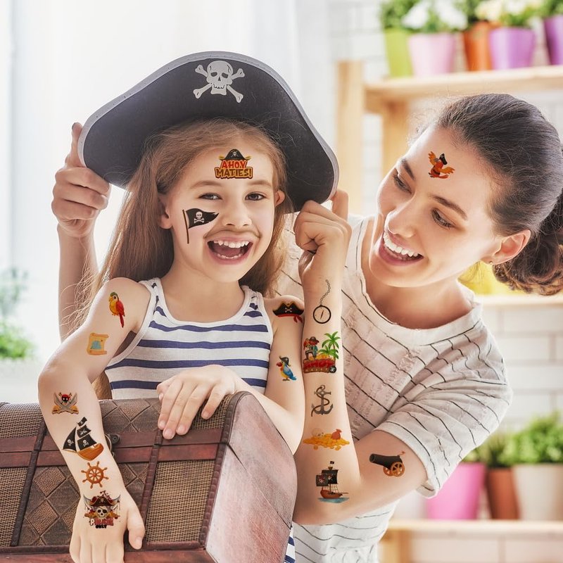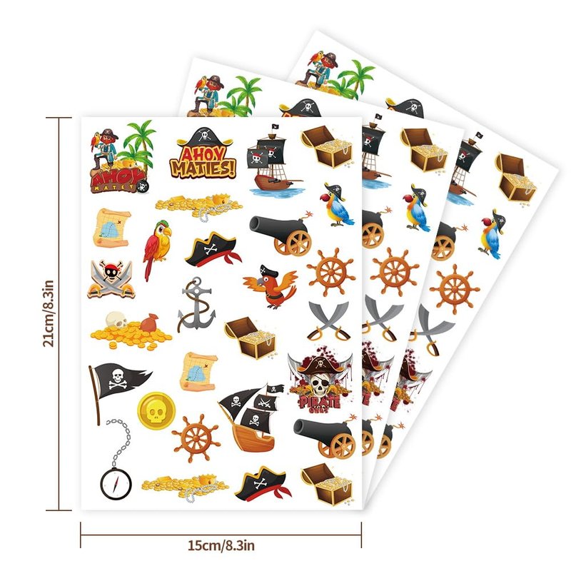 - 【Perfect Party Accessory】a fun addition to pirate theme party decoration! Each sheet measures 8.25 " x 6 " creating the perfect size tattoos!