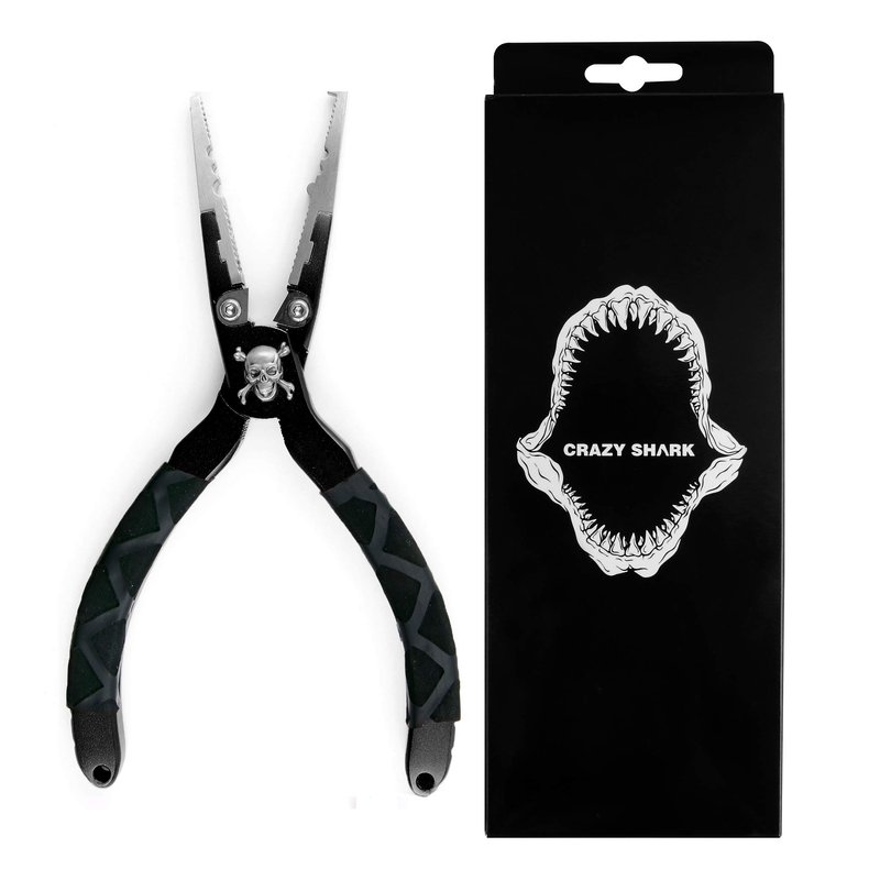 Crazy Shark Professional Saltwater/Fresh Water Aluminum Fishing Pliers Tungsten Carbide Cutters Split Ring Pliers Hook Remover Fish Holder (Blue.T)