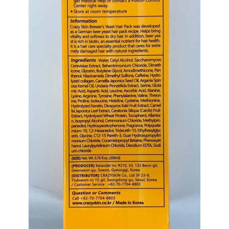 Unleash the power of German beer yeast in the comfort of your home with our CRAZY SKIN Beers Hair Pack. This revolutionary hair treatment mask is specially formulated to rejuvenate your locks, providing the care they deserve. Say goodbye to dry, damaged, or color-treated hair and hello to the lustrous, vibrant tresses you've always dreamed of! German Beer Yeast: Harness the incredible power of German beer yeast, a well-known secret for hair health. Rich in essential nutrients and proteins, it helps strengthen your hair, prevent breakage, and promote natural shine.