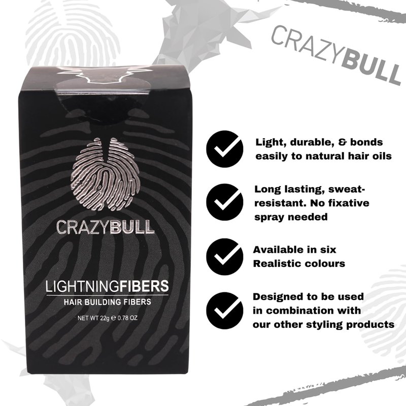 CrazyBull Hair Lightning Hair Building Fibers - Plant Based Hair Fibers - Hair Fibers for Thinning Hair - Bonds to Hair and Scalp - Black - 0.77 oz