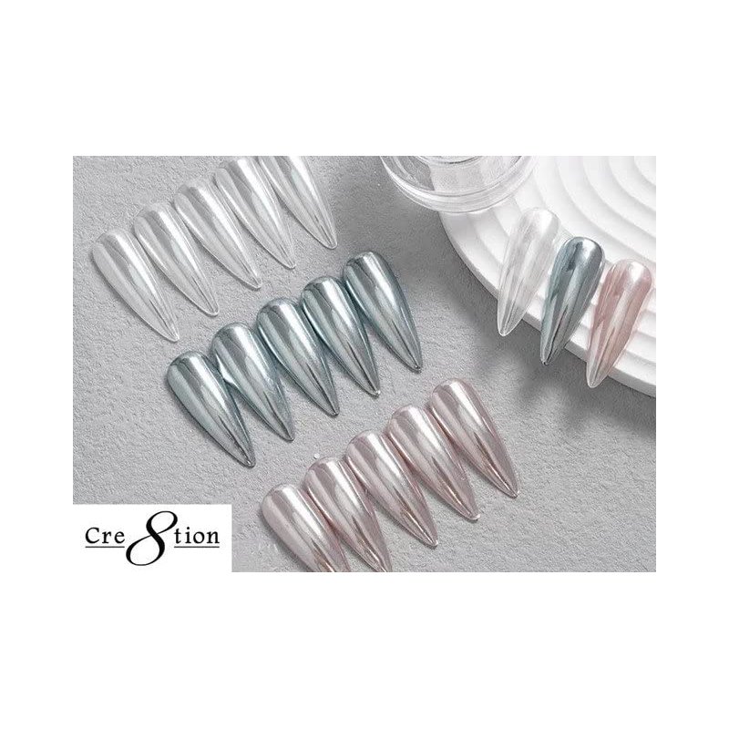 Cre8tion White Pearl Magic Chrome Nail Powder for DIY Nail Arts - Nail Art Glitter Chrome Powder Shimmer | Professional Salon Use - White (1g)