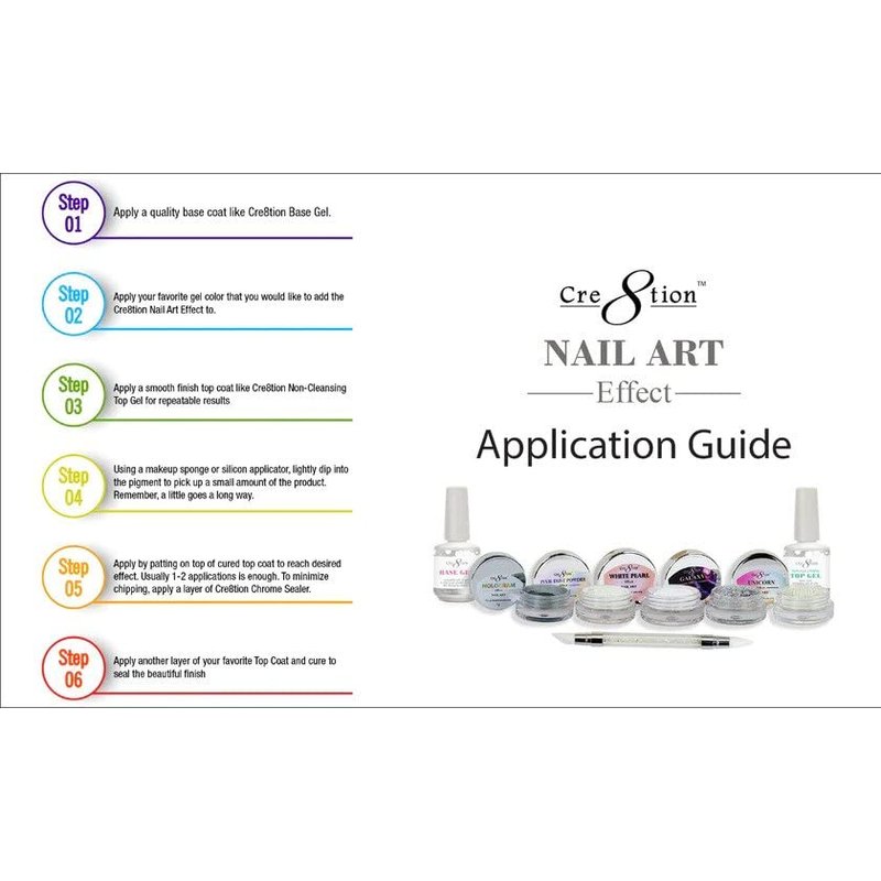- Easy Application: The powder adheres effortlessly to both natural and artificial nails. You can use it with regular nail polish, gel polish, or acrylic nails. Simply apply it over a wet layer of polish or a tacky nail surface, and seal it with a top coat for a glossy finish