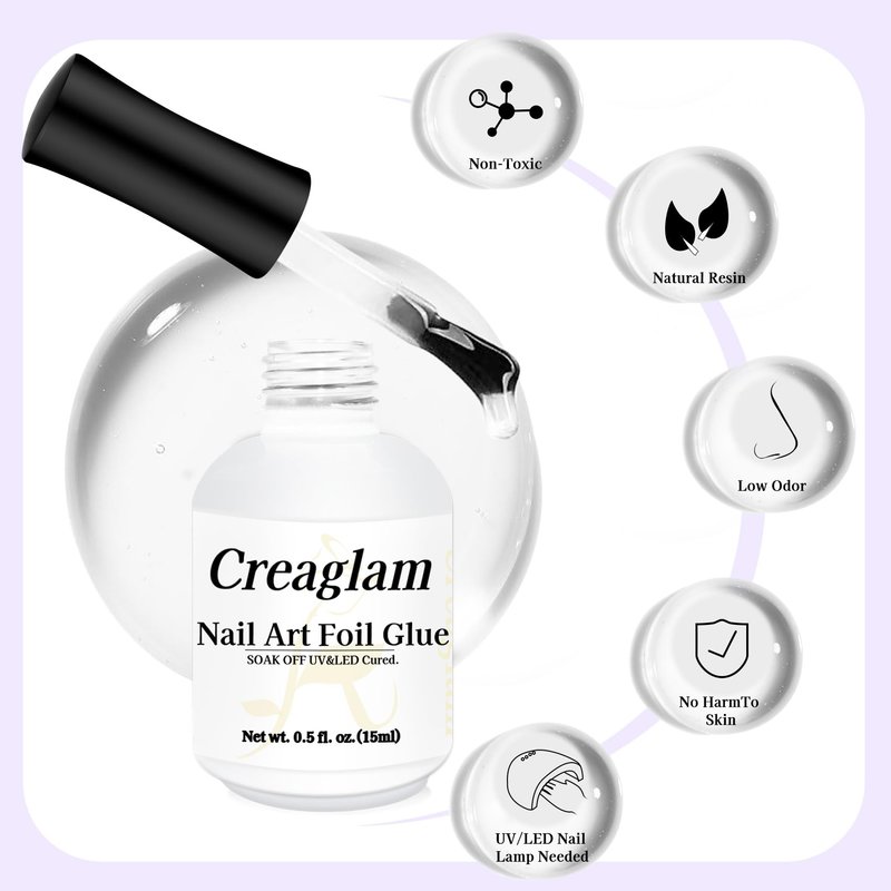 - Effortless Nail Foil Transfer: Creaglam's nail foil glue gel ensures a seamless and quick transfer of nail foils to your nails. Create unique nail foils transfer nail art at home and enjoy the fun of DIY nail designs. Please note that foil stickers are not included in this product.