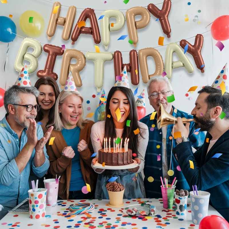 - Quality: Our elegant cream and brown happy birthday banner are crafted from well, ultra shiny aluminum foil that’s made to last. Designed to retain their vibrant color and form without leaking or deflating, these decorations are perfect for reuse, adding a touch of sparkle to birthdays event. With proper care, they can become a cherished part of every celebration—simply store them carefully, and they’ll be ready to bring festive cheer year after year.