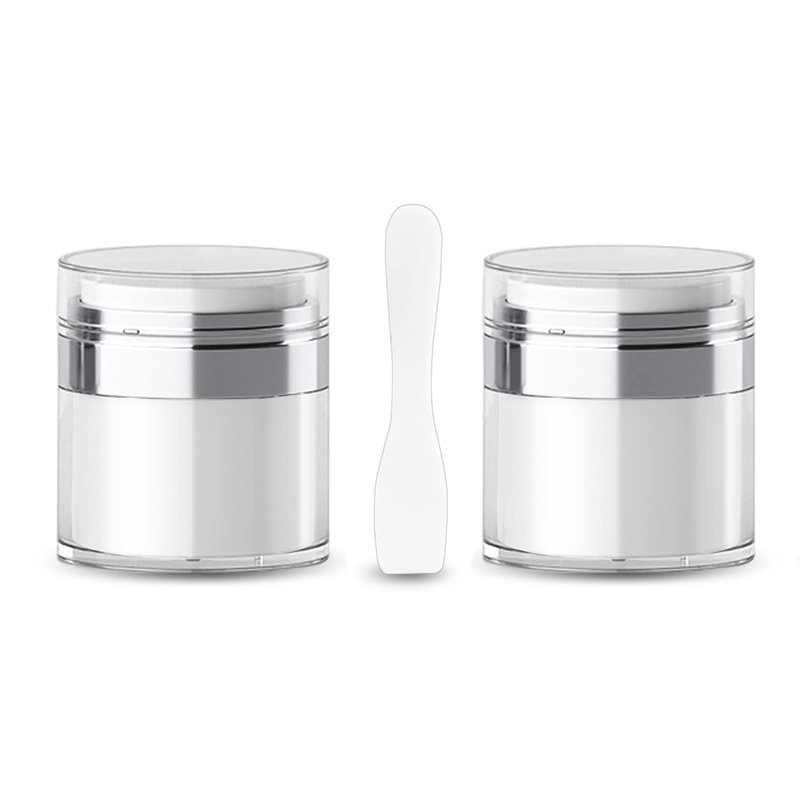 Cream Jar Vacuum Bottle with Cosmetic Spatula,TSA Approved Travel Bottles-Refillable Travel Size Containers for Creams Gels Lotions Face Body Hand Cream(2 Pieces)