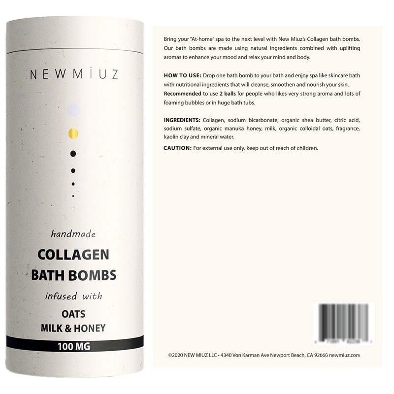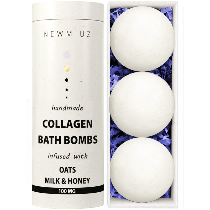 - BATH ESSENTIALS: Experience the tranquility of our creamy collagen bath bomb, expertly infused with the soothing essences of oatmeal milk & honey. These luxury bath bombs, tailored for women, elevate your bathing ritual, setting the stage for a perfect night.