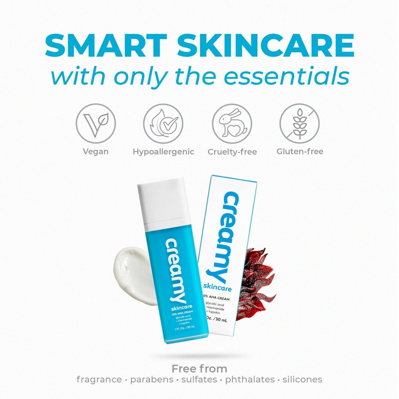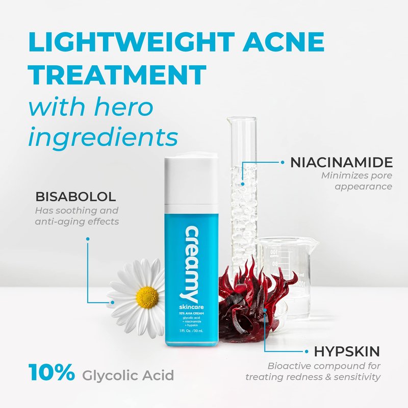 Creamy Skincare 10% Glycolic Moisturizer, Exfoliating Face Cream with Glycolic Acid, Niacinamide, and Hypskin, Nourishing, and Hydrating Cream, 1 fl oz/30mL