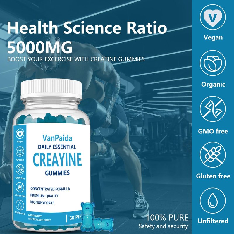 **Creatine Gummies: Boost muscles to new heights and chew a new chapter of strength** 💪 **Chew and go, unlimited energy** Have you ever worked up a sweat at the gym and felt like you couldn't fully release your strength? Have you ever longed for a mysterious force to help you at a critical moment? Creatine gummies, a blast of energy tailored for you, will make you feel an unprecedented surge of power between chewing. 🍬 **Not just candy, but also the secret weapon of muscle** Creatine gummies are different from ordinary candies on the market. It combines advanced technology with traditional craftsmanship to perfectly blend creatine monohydrate into gummies, allowing you to enjoy delicious food while easily ingesting nutrients that are beneficial to your muscles. Every chewing is a care and nourishment for the muscles. 💥 **Muscle Strengthening, Explosive Power Doubled** Are you eager to show off your explosive power in your workouts? Creatine monohydrate in creatine gummies is quickly absorbed by the body and converted into energy for muscles. Supplementing creatine gummies before your workout can help you exert more power than you ever imagined, making every move you move with strength and passion. 🏋️ **Performance Improvement, Challenge New Heights** Whether you're lifting weights, running, or other sports, creatine gummies provide you with long-lasting energy support. Not only does it strengthen your muscles, but it also boosts your athletic performance and puts you better on your way to challenging yourself. 🌱 **Gospel for Vegans** We understand vegans' struggles when it comes to choosing sports nutrition. That's why creatine gummies are specially designed for vegans, so you can stay true to your faith while enjoying muscle growth and performance. 🌾 **Gluten-free, more suitable for your stomach** Modern people's gastrointestinal health is getting more and more attention. Creatine gummies are gluten-free, which not only tastes better, but also reduces the burden on your stomach, so that you can enjoy delicious food while taking care of your gastrointestinal health. 🔍 **Quality assurance, trustworthy** We strictly control every step of the production process of our products to ensure that each creatine gummy meets high standards of quality. We firmly believe that only high-quality products can win the trust and support of consumers. 🌟 **Empower dreams, crown life** Whether you're a fitness enthusiast, an athlete or just a hobbyist, creatine gummies are an indispensable companion. Let's chew out the strength, the dream, and the new chapter of your life together! Creatine Gummies – Your New Muscle Building Option! ** 🚀 Add to cart now and let creatine gummies accompany you to challenge yourself and exceed your limits! We believe that with your persistence and hard work, you will be able to become a better version of yourself!