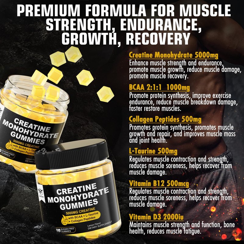 - 😋 【YUMMY GUMMY - MADE IN THE USA】Our creatine monohydrate gummies are naturally lemon flavored, chewable and delicious. The delicious creatine monohydrate gummies is a perfect substitute for other creatine supplements such as creatine capsules, creatine pills, creatine powders. Our creatine monohydrate gummies are manufactured, tested and bottled in GMP-certified facilities to ensure superior quality. If you are not satisfied with anything, please contact us by email.