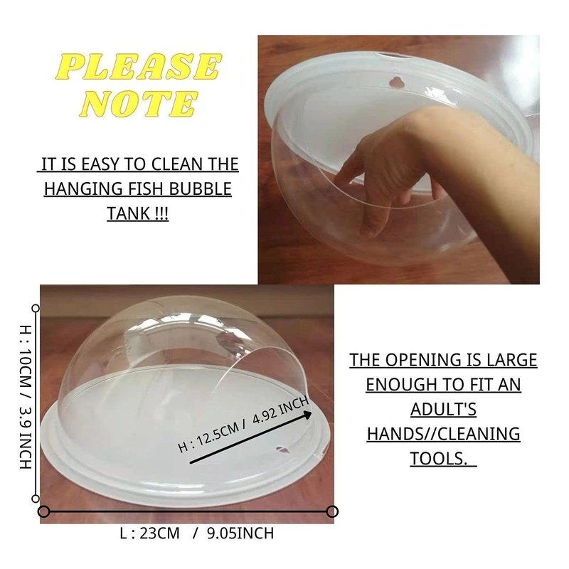 - 💕 VERY EASY TO CLEAN: The opening in this hanging fish bubble tanks is large enough to fit a hand inside if needed for cleaning or maintenance. So It is so easy to clean for most people to put hands/cleaning tools In there.