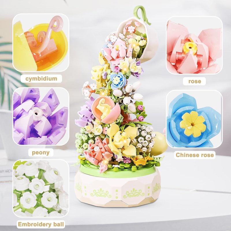 - Rotating Music Box with Dreamy Lighting: This flower building set features a rotating base that plays a soothing melody while soft, changing LED lights create a magical atmosphere, perfect for romantic dinners, parties, or any special occasion.