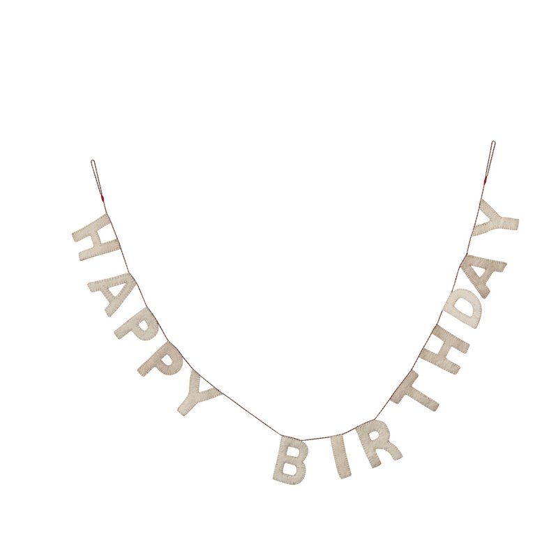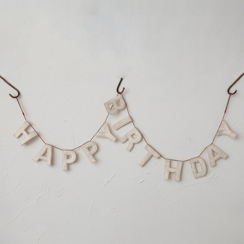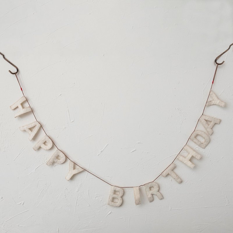 Creative Co-Op Decorative Felt Happy Birthday Banner, Natural Garland, Ivory