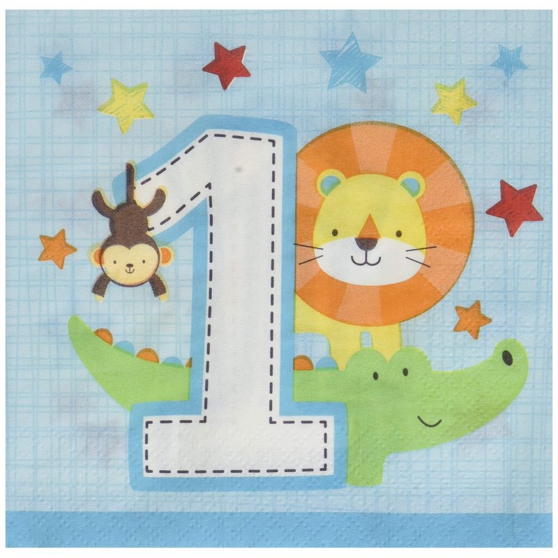 Creative Converting 324597 One is Fun Boy Beverage Napkins Party Supplies, 5", Multicolor
