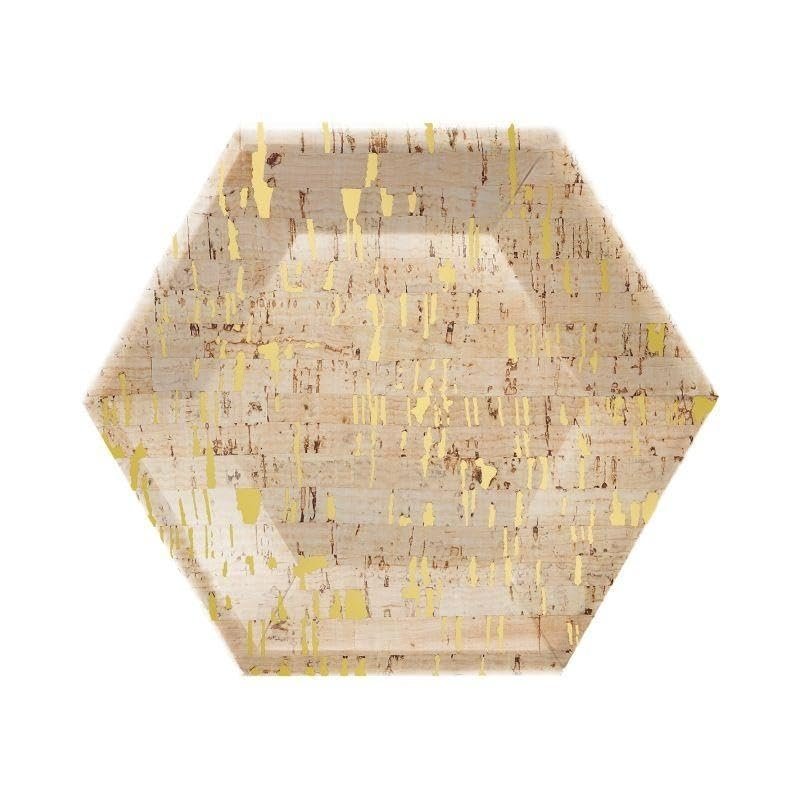 - These hexagon-shaped plates feature an elegant cork design with gold accents these plates are the perfect addition to any celebration