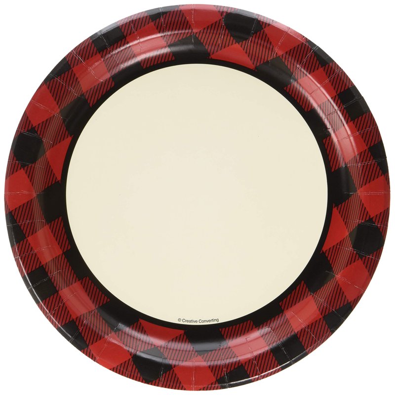 - Buffalo plaid 9 inch lunch/dinner plates. One package of 8 buffalo plaid 9 inch lunch/dinner printed paper plates.