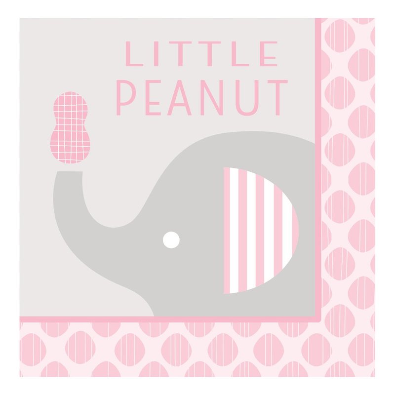 - Package includes: 16 pcs. "Little Peanut" Pink Elephant Lunch Paper Napkins which is 3 ply. and measures 6.5 inches x 6.5 inches when folded.