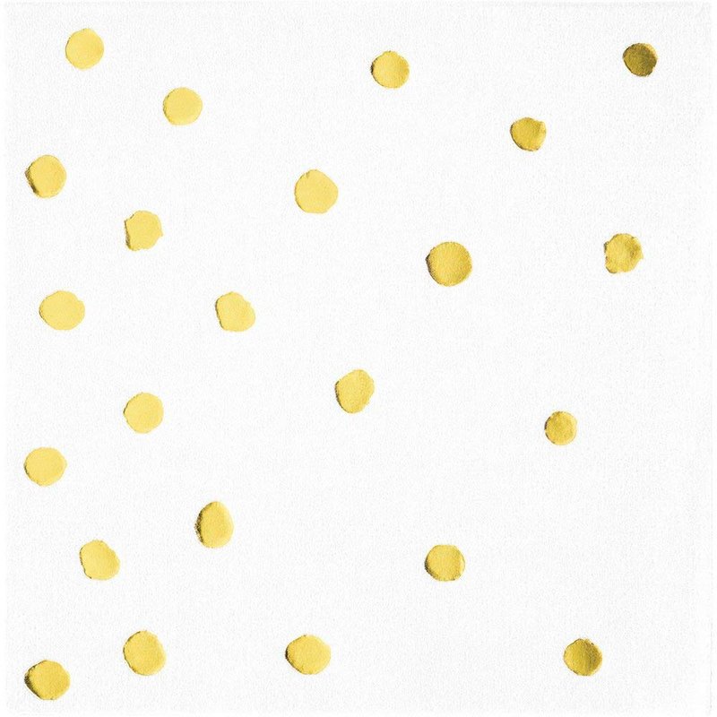 - 16 White and Gold Foil Dot Cocktail Napkins