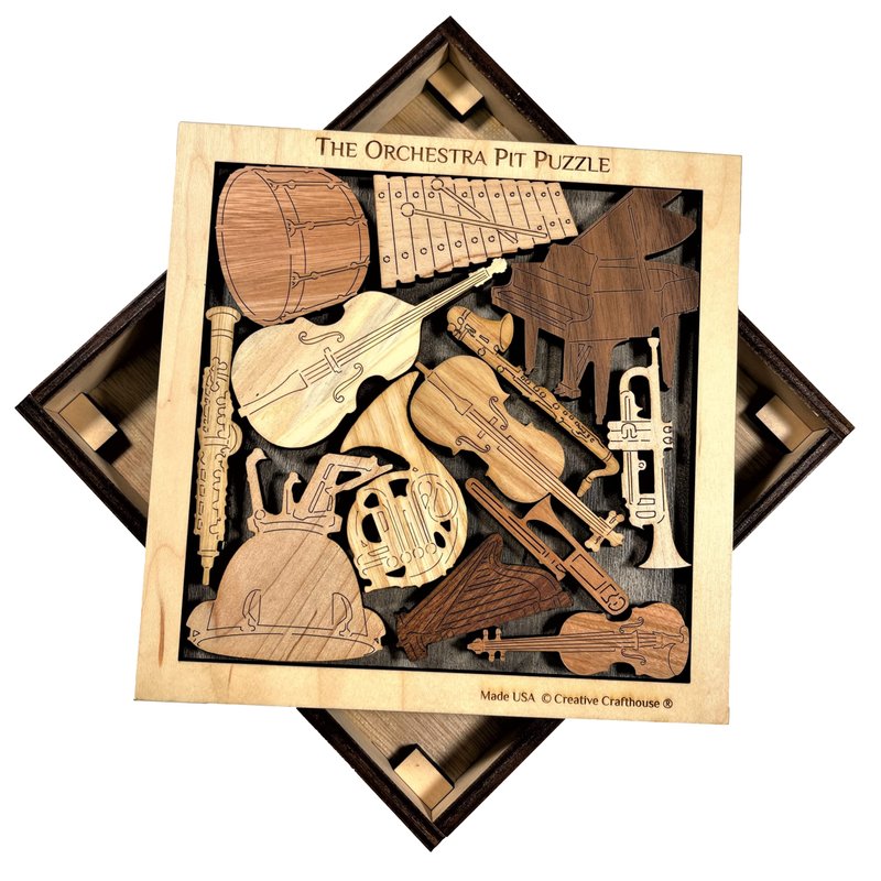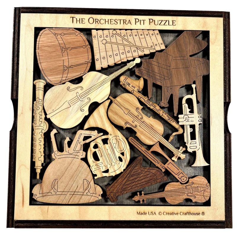 - Beautifully Crafted: This wooden puzzle features 13 different musical instruments found in an orchestra pit, including Violin, Cello, Piano, and more. Each piece is precision cut from fine hardwoods for a stunning finish.