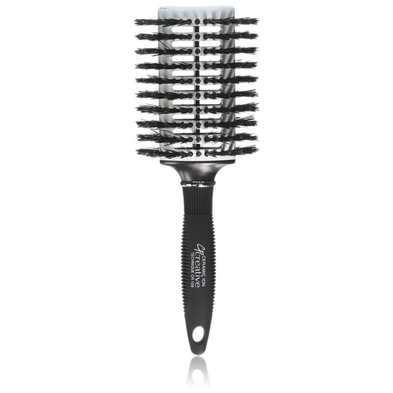 - Reinforced boar bristle brush with snag free design great for blow drying